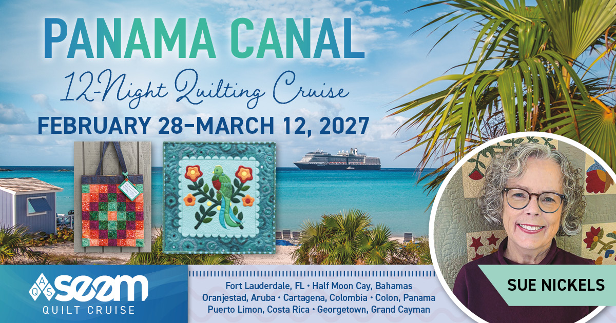 I am excited to announce I will be teaching on the 2027 AQS Seam Quilt Cruise Panama Canal! The dates are February 28- March 12. Visit:  https://www.americanquilter.com/quilt-cruise/aqs-seam-2027-panama-canal-cruise/ for more information. I love teaching on quilt cruises and look forward this cruise with AQS. I am teaching machine classes and kits will be provided to make this a fun and stress free vacation. I do pride myself in great cruise kits!! Hope you can join us!